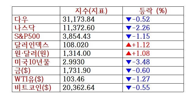 | [뉴욕증시] 탄탄한 고용지표에 혼조세 마감…다우 0.15%↓ (0) | 2022.07.09 |