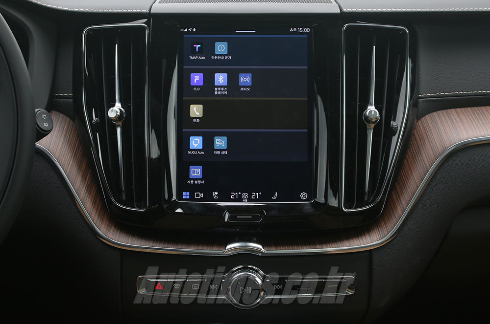 실내는 볼보차 특유의 아늑한 분위기가 물씬하다. 대시보드와 센터페시아를 따라 길게 늘어진 우드 트림과 시트 가죽 색상에서 포근함이 강하게 와 닿는다. 더욱 의외인 건 차가 세련된 느낌을 준다는 점이다. 여기엔 디지털 계기판과 티맵 기반 인포테인먼트 시스템 등이 한 몫 한다. 티맵 인포테인먼트 시스템은 손동작 없이 '아리아'를 불러 AVN 시스템과 에어컨 등을 조작할 수 있다. 디지털 계기판은 여느 볼보차 라인업과 마찬가지로 속도, 내비게이션, 변속모드 등을 간결하게 보여준다. 이제는 볼보와 뗄 수 없는 바워스&윌킨스 오디오도 마찬가지다.