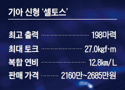 이전 세대 셀토스는 1.6L 가솔린 터보와 1.6L 디젤 엔진으로 구분됐는데, 신형 셀토스는 디젤 모델을 없애고 1.6L 가솔린 터보와 2.0L 가솔린 엔진으로 출시됐다. 2.0L 가솔린 엔진은 무단 변속기(IVT)와의 조합으로 최고 출력 149마력, 최대 토크 18.3㎏f·의 성능을 발휘한다. 복합 기준 연비는 12.9㎞/L다. 출력과 토크가 터보 엔진 모델보다 낮은 대신 가격이 약간 더 저렴하다. 신형 셀토스의 가격은 1.6L 가솔린 터보가 트림별로 2160만~2685만원, 2.0L 가솔린이 트림별로 2062만~2587만원이다.