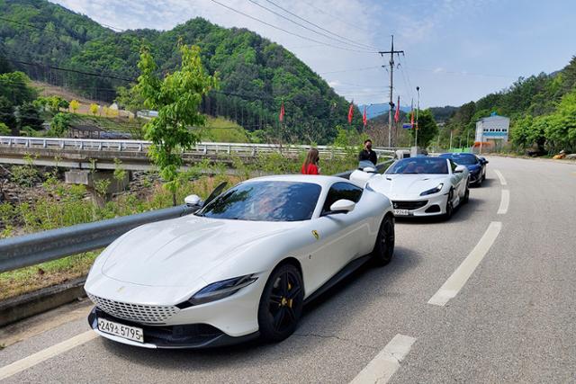 강원도의 도로에서 마주한 세 페라리