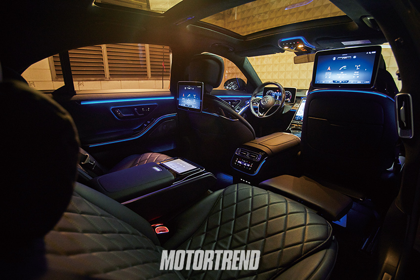 S 580 L은 뒷좌석 VIP를 위한 목과 어깨 히팅에서부터 다리 마사지, 자외선 차단, 개별 엔터테인먼트 시스템과 MBUX를 제어할 수 있는 뒷좌석 태블릿 등 모든 편의사양을 갖추고 있다. 누가 뭐래도 이 차의 하이라이트는 뒷좌석임을 분명히 한다.