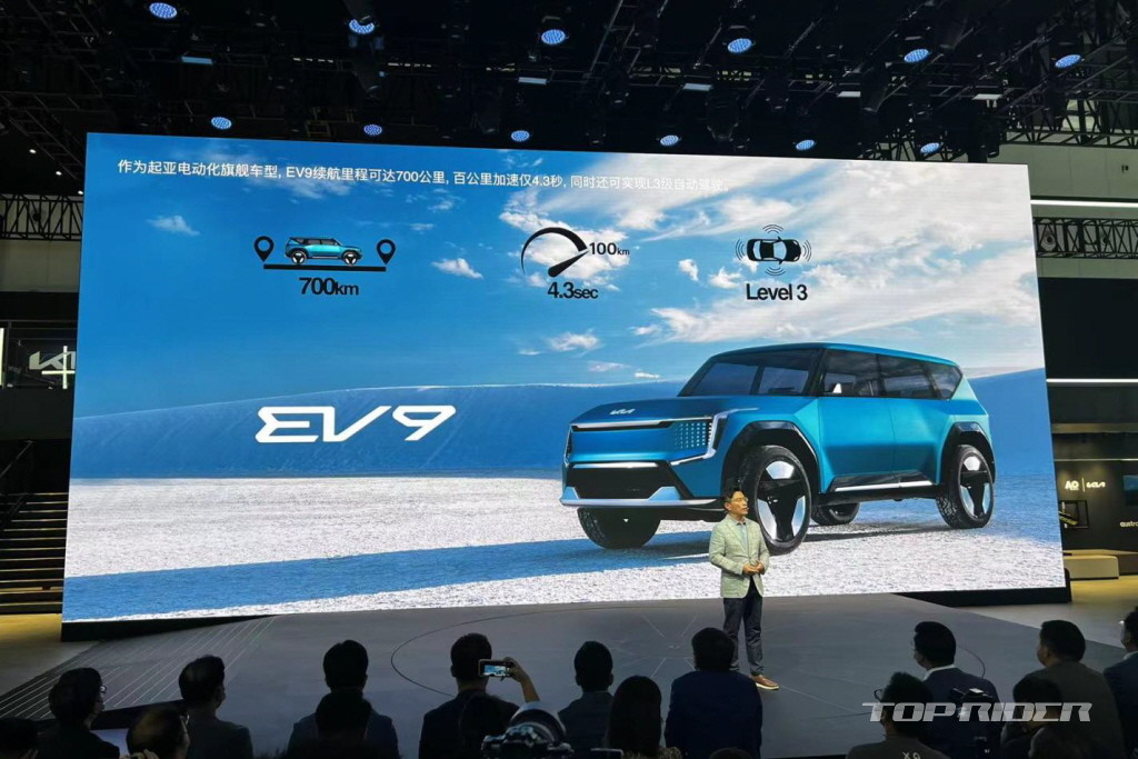 EV9은 전장 5m에 달하는 대형 SUV로 1회 완충시 주행거리 540km, 제로백 4.3초의 성능을 갖췄다. 내년 4월 출시된다.