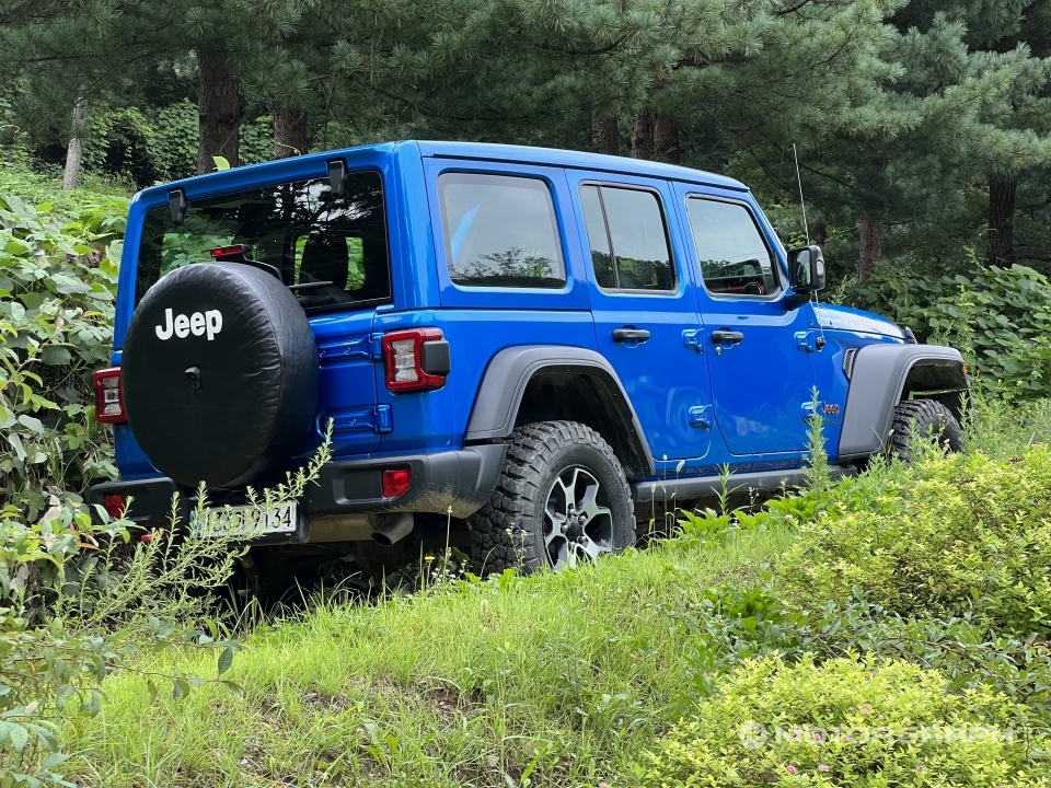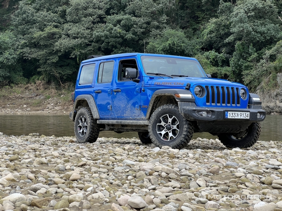 도심형을 추구하는 오버랜드와 달리 루비콘은 오직 오프로드에 집중한다. 툭 튀어나온 펜더는 무광 플라스틱으로 마감했고, 일명 '깍두기'라 불리는 오프로드용 타이어까지 신었다. 험로 주행에 거슬릴 수도 있는 사이드 스텝을 과감히 없앤 대신 차체를 보호하기 위한 레일을 설치했다. 진정한 자연을 만끽하기 위해선 껑충한 차체를 타고 내리는 불편을 감수해야 하는 법이다.