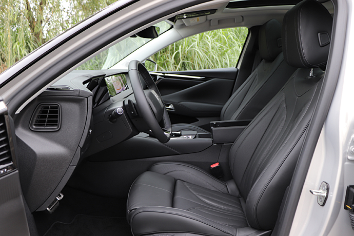 시트는 5인승. 앞 시트는 풀 버킷 타입으로 좌우 지지대의 챔버가 의외로 크다. 과거의 프랑스차와는 분명이 구분되는 안락감과 단단함이 공존하고 있다. 착좌감 자체는 부드럽다. 리어 시트는 60 : 40 분할 접이식. 머리공간도 이 등급의 모델로서는 특별히 좁지는 않다.