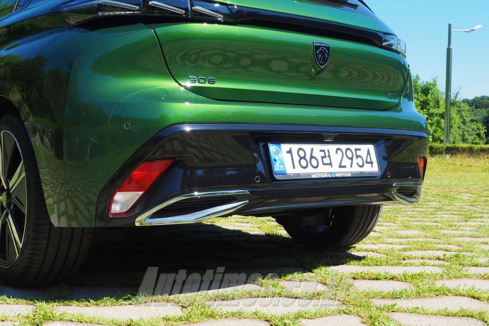 뒤는 입체적이다. 작은 LED 테일램프는 푸조의 상징인 사자 발톱을 형상화했다. 또 스모크 글라스로 감싸 중후하면서도 시각적으로 차를 넓어 보이게 한다 .여기에 시동을 켜면 웰컴 라이팅까지 선보이며 운전자를 반긴다. 트렁크는 깊게 주름을 접어 밋밋함을 피했고 범퍼 상당 부분을 유광 블랙으로 감싸 고급감을 키웠다.