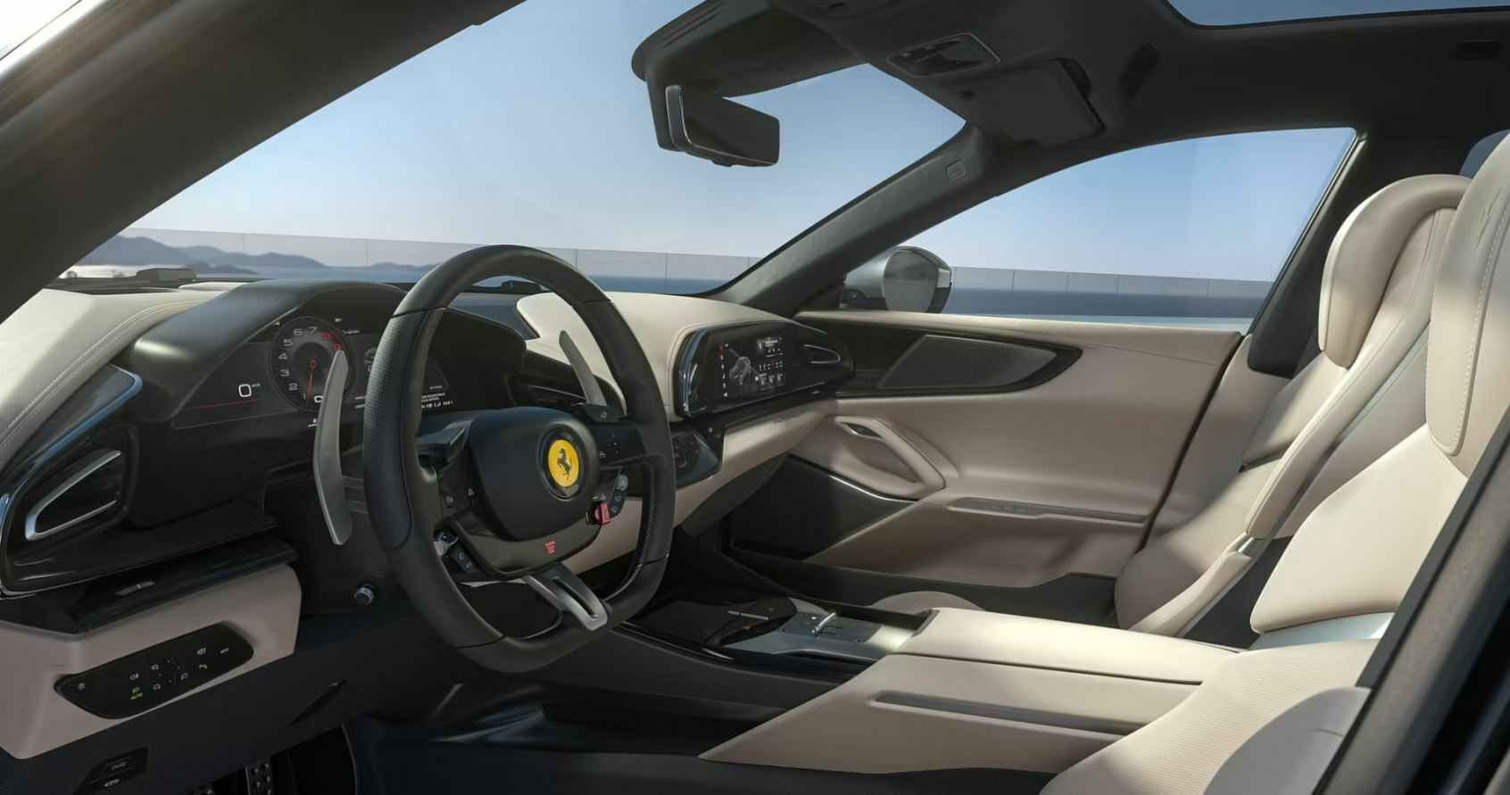 페라리 역사상 4개의 문이 달린 최초의 모델 푸로산게 SUV의 인테리어는 외관만큼이나 매적이고 실용적인 기능으로 가득 차 있다.