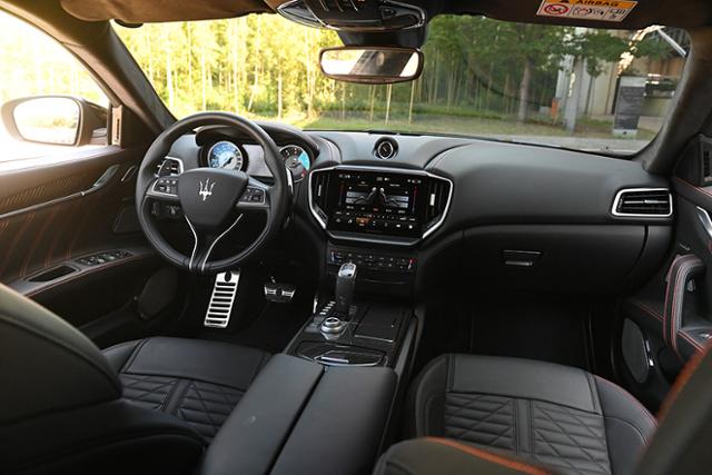마세라티 특유의 대시보드와 스티어링 휠, 센터페시아, 그리고 센터 터널 등의 형태는 일반적인 차량들과 차이가 없다. 하지만 소재의 연출, 그리고 카본파이버의 적용은 물론이고 붉은색 스티치를 곳곳에 더해 ‘고성능 모델의 감성’을 선명히 드러낸다.