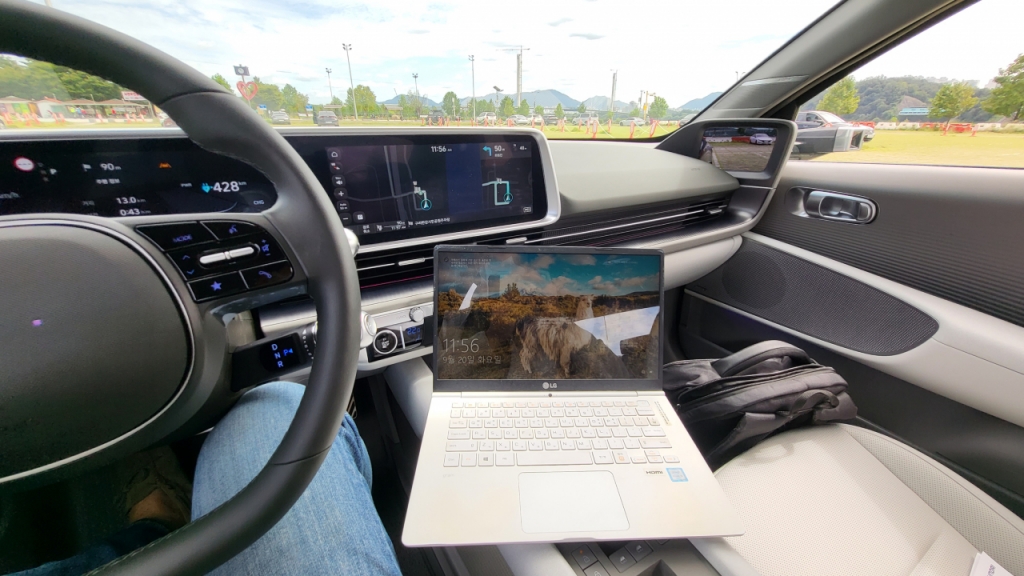 아이오닉6의 전장은 쏘나타와 흡사하지만 앞바퀴와 뒷바퀴 사이의 길이(휠베이스는) 한 체급이 더 높은 그랜저와 비슷하다. 그러나 그랜저의 뒷자리 승차감을 구현해내진 못한다. 트렁크도 공간이 그리 넉넉한 편은 아니다. 기자가 4인 가족이 넉넉히 타고 다니기엔 다소 아쉽다는 인상을 받은 이유다. 통풍·열선시트, 핸들 열선을 작동시키기 위해선 여러 단계 터치를 거쳐야하는 점도 아쉽다.