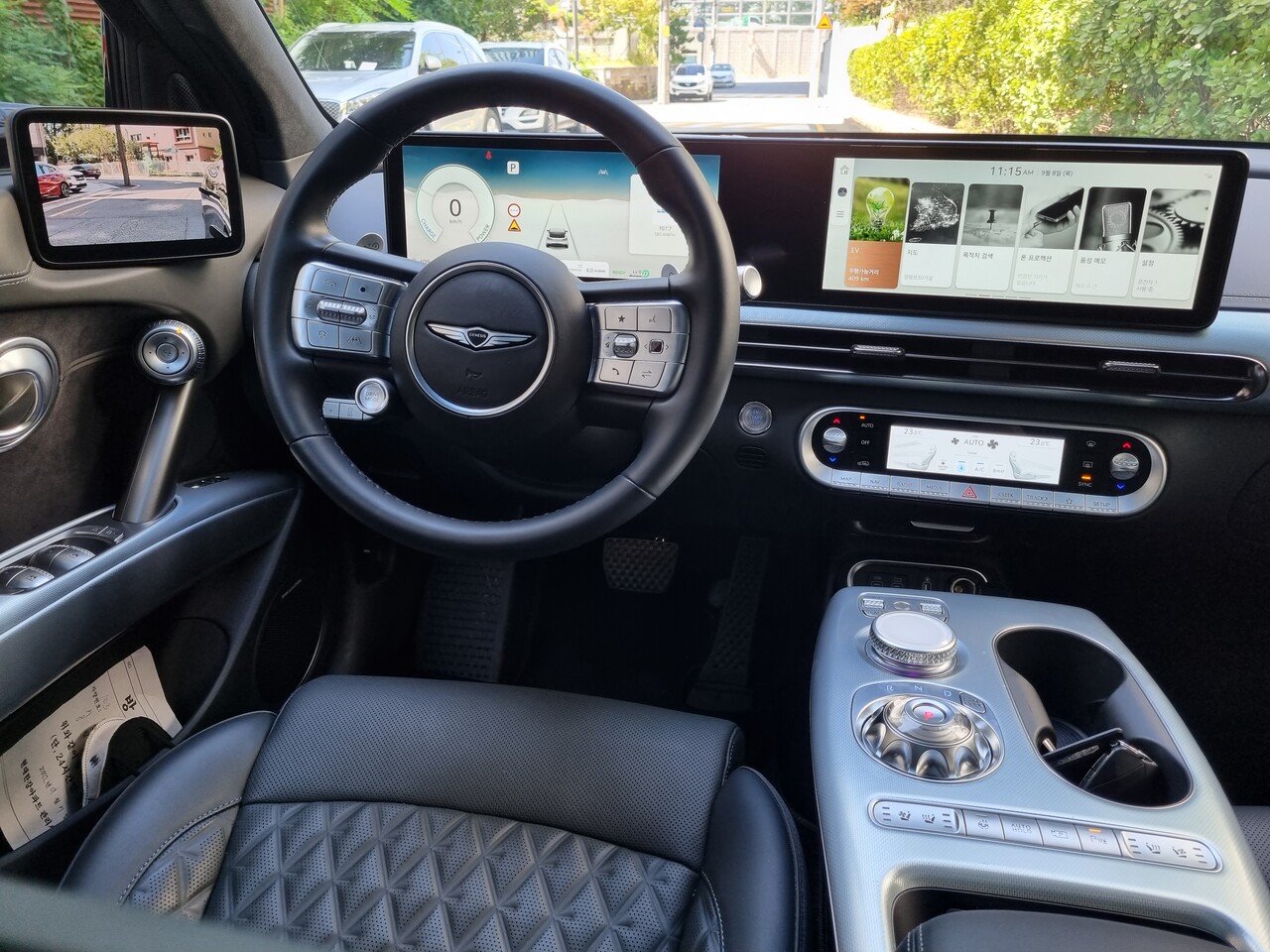 적응이 쉬운 디지털 사이드미러, 대형 헤드업디스플레이, 다각도 서라운드뷰, 센터페시아 하단의 썬글라스 케이스, 공기청정기능, V2L 등 옵션들은 GV60의 가치를 더욱 높이는 요소였다.