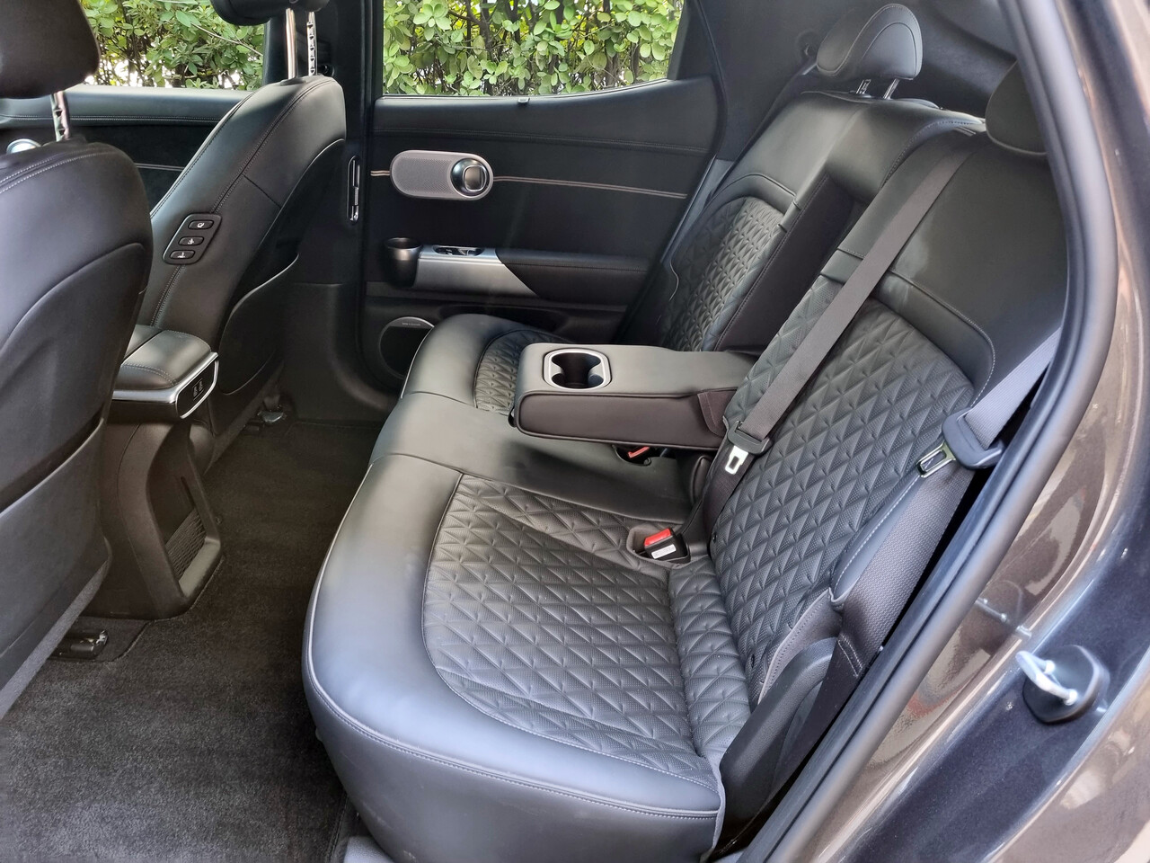 2열 공간은 넉넉하다. 전기차 플랫폼인 E-GMP으로 시트 밑이 불뚝 튀어나온 것도 없고 리클라이닝 기능도 있어 편안한 자세를 취할 수 있었다. 트렁크 공간 역시 골프백을 대각선으로 무난히 넣을 수 있도록 고려돼 4인가족용 패밀리 전기 SUV로 제격이었다.
