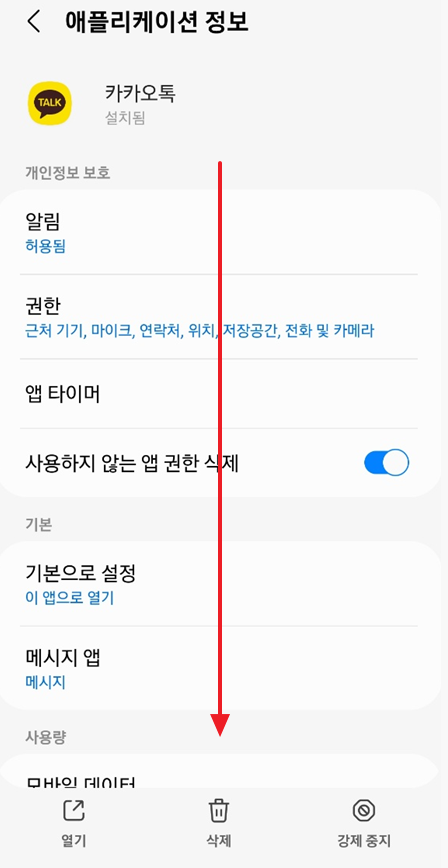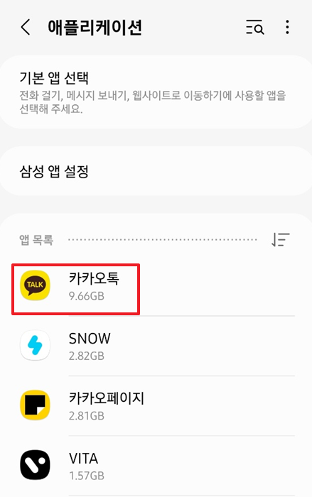 데이터를 정리해야 할 앱을 선택합니다. 가장 많은 용량을 차지하고 있는 카카오톡을 선택하도록 하겠습니다.