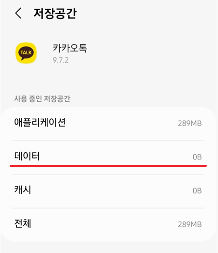 카카오톡의 경우 데이터 삭제를 하면 대화목록이 모두 삭제된다고 들었습니다.