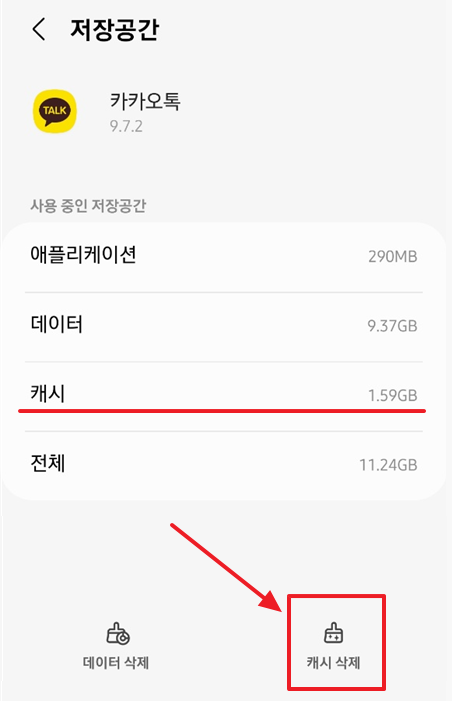 카카오톡 캐시가 깨끗하게 삭제된 것을 확인할 수 있습니다.