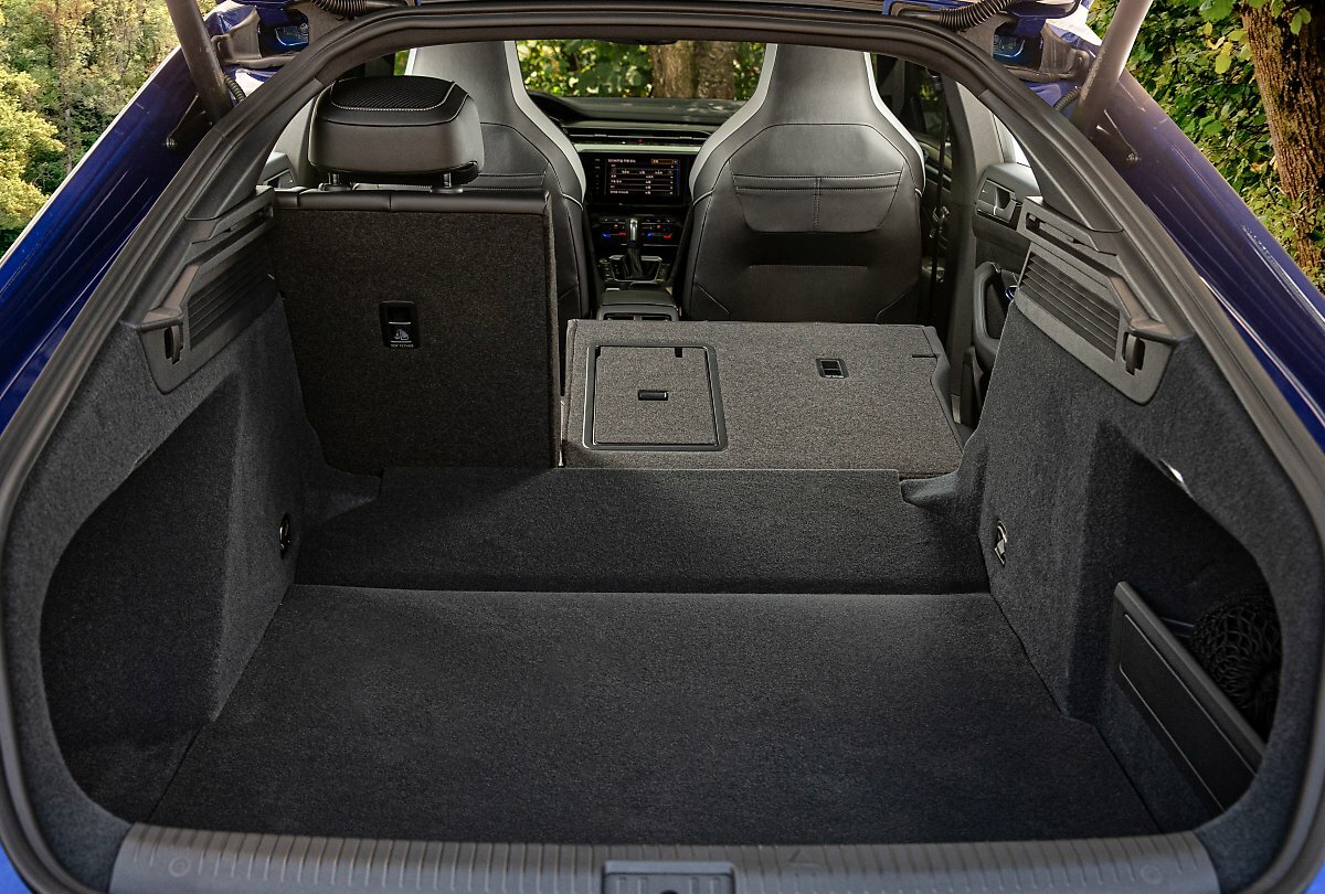 폭스바겐그룹 디자인 총괄 클라우스 지시오라는 아테온을 이렇게 소개했다. “본래 양립할 수 없던 상반된 가치를 한 번에 녹여냈습니다. 궁극적인 우아함과 실용성을 아우르죠.” 그 말 그대로다. 스포츠카처럼 날렵한 아테온은 신기하게도 실내가 아주 넓다. 2열 다리 공간은 동급 최고 수준인 1016mm까지 확보했고, 트렁크 공간은 왜건처럼 2열과 한 번에 이어져 최대 적재 용량이 1557L에 달한다. 더 친숙히 설명하면 1열 시트 뒤에서 트렁크 끝까지 거리가 2m가 넘는다. 직접 누워봤더니 키 177cm 정도는 널널했다.