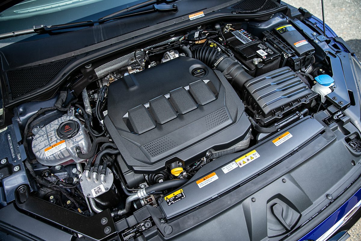 'R-라인' 시승차는 고성능 분위기를 풍기는 장식을 더했다. 구멍이 네 개나 뚫린 배기구는 가짜다