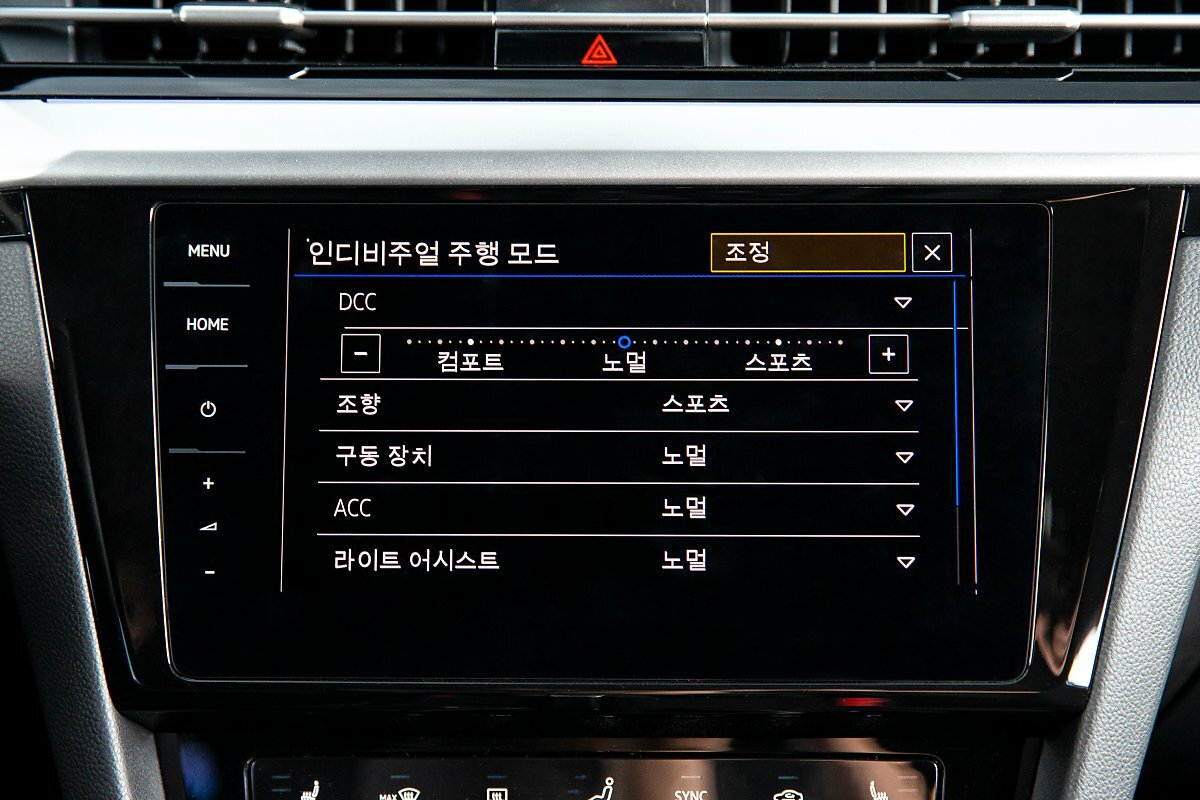 이토록 역동적인 하체가 나긋하게 달릴 땐 또 부드럽게 늘어질 줄도 안다. 다른 고급 세단이 대개 그렇듯 주행모드에 따라 전자제어 댐퍼, 조향장치, 구동장치 등을 바꾸는데, 아테온은 한 걸음 더 나아갔다. 각 장치를 개별 설정하는 인디비주얼 모드에서 서스펜션 댐퍼를 무려 15단계로 조율할 수 있다. 차이는 또렷하다. 부드럽게 풀면 출렁일 정도로 힘을 빼고 단단하게 조이면 신경질적으로 굳는다. 개인적으로는 노멀 모드가 승차감과 안정감이 가장 조화로웠다. 괜히 ‘노멀’이 아니다.