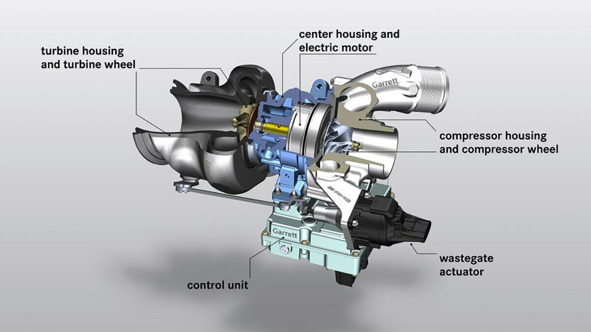 터보차저도 진화했다. AMG C43 혹은 SL 43 모델에 탑재된 터보차저 대비 사이즈가 커져 보다 큰 힘을 발휘할 수 있도록 했다. 터보차저를 단번에 15만 rpm까지 회전시키는 전기모터도 과거의 48V 시스템을 벗어나 400V 시스템을 기반으로 작동하게 됐다.