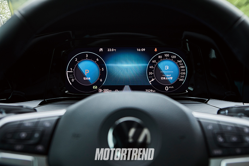 그러나 여전히 골프의 논리적 설계는 탁월하다. 운전자 시야의 관점에서는 디스플레이와 적절한 거리를 유지하는 것이 중요하다는 사실을 인지한 듯 높이 차이가 살짝 있는 디지털 계기반과 인포테인먼트 디스플레이의 레이아웃이 대표적이다. 또한 운전자세는 여전히 완벽하다. 골프만의 진중함은 아직 살아 있었다.