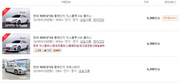 최신 전기차 아이오닉6 출시직후 중고차 매물
