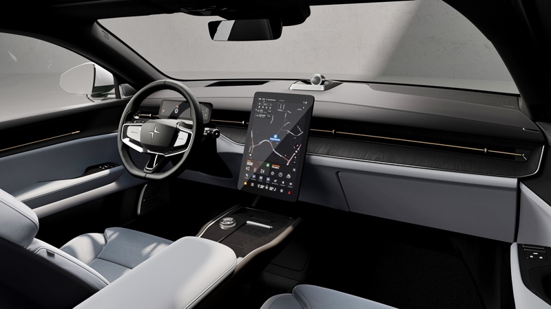 폴스타2의 11.15인치보다 더 커진 태블릿 PC 형태 14.5인치 중앙 디스플레이를 통해 조작한다.