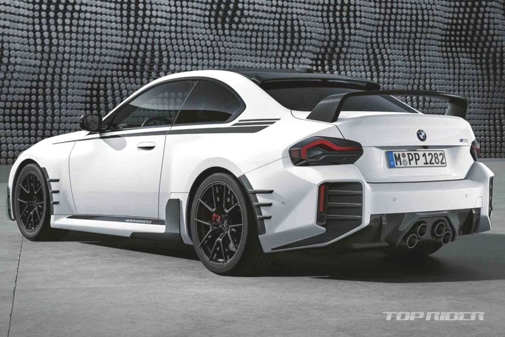 BMW는 신형 M2 M 퍼포먼스 파츠(M Perormance Parts)를 13일(현지시간) 공개했다. 신형 M2 M 퍼포먼스 파츠는 과격한 보디킷을 특징으로 후면부 범퍼 중앙에 배치된 쿼드 머플러, 다운포스 발생을 위한 루프 스포일러와 리어 윙 등이 적용됐다. 국내 출시는 미정이다.