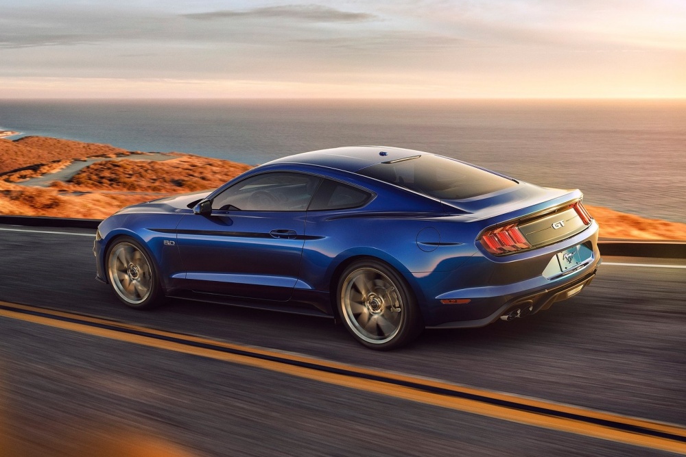 실내는 계기판과 센터페시아 화면이 하나로 이어진 커브드 디스플레이를 탑재했다. 인포테인먼트 구성도 전부 달라졌다. 동력계는 4기통 2.3ℓ 에코부스트 엔진과 8기통 5.0ℓ 자연흡기 가솔린 엔진 중 고를 수 있다. 변속기는 6단 수동과 10단 자동 중 선택 가능하다. 액티브 서스펜션과 브렘보 브레이크 시스템, 지능화한 LSD 등을 넣어 주행 완성도를 끌어올렸다. 생산은 전량 미국 미시건주 플랫 록 공장에서 담당한다.