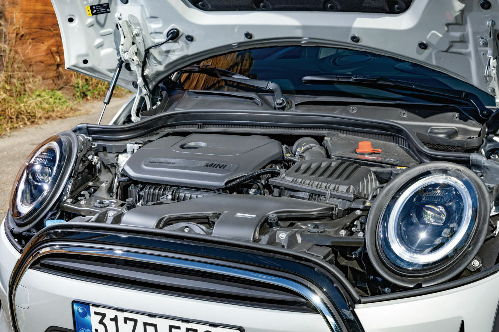 우리가 시승한 쿠퍼 클래식은 1.5L 싱글 터보 엔진에 7단 듀얼 클러치 변속기를 조합한다. 엔진의 최고 출력은 136마력/4500rpm, 최대토크 22.4kg·m/1480~4100rpm에서 발휘한다. 수치만으로 예상하면 약간 답답할 것 같다. 실제로는 묵직한 필링이라는 설명이 더 정확하다. 각종 보강재로 늘어난 몸무게는 해치백 대비 약 80kg 더 무겁다. 몸무게의 증가는 가속 때도 여실히 느껴진다. 쿠퍼 클래식의 주행 성능은 짜릿함보다는 부드러움에 가깝다. 그런데도 손에 짝 달라붙는 핸들링 감각으로 아주 재미있다. 급출발이나 급가속을 제외하면 딱히 답답한 부분도 없다. 차가 움직이기 시작하면 싱글 터보 엔진과 듀얼클러치 변속기가 호흡을 맞춰 유연하게 달린다.