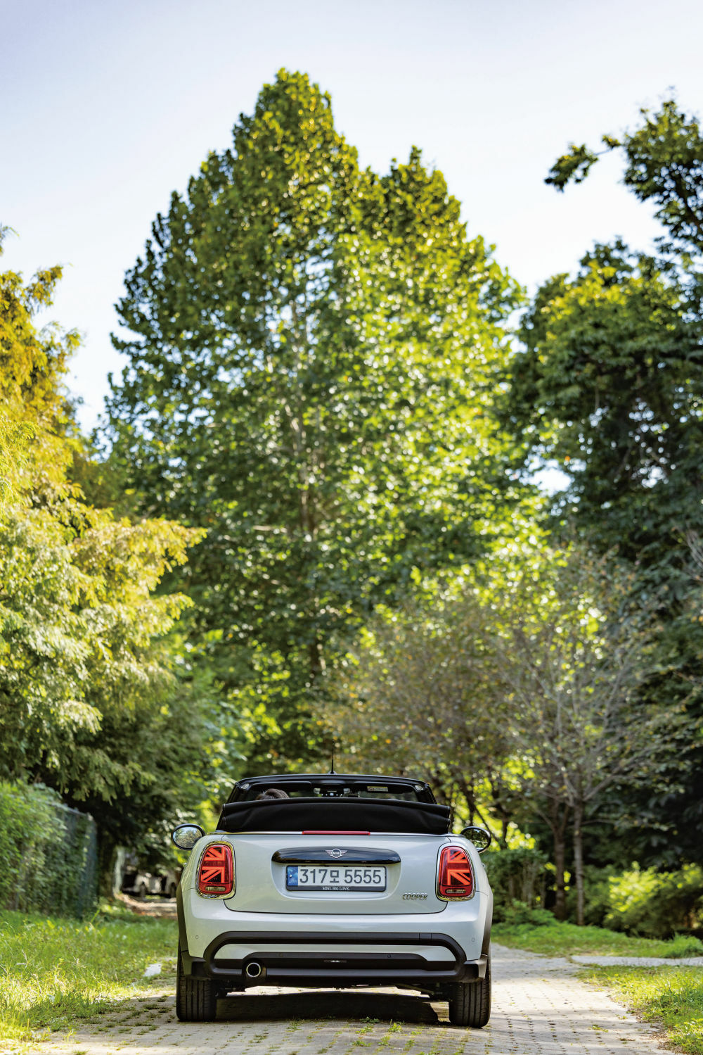 미니 컨버터블에 소프트톱은 해치백의 날렵한 디자인과 달리 C 필러가 패브릭으로 두껍게 마무리된다. 그래서 톱을 닫고 있을 때는 해치백보다 답답해 보이는 모습이다. 반면 톱을 열면 분위기가 완전히 달라진다. 루프가 트렁크 위로 접히며 매끈한 보디라인 뒤로 합세하고, 컴팩트 한 차체와 어울려 마치 로드스터처럼 가볍게 변신한다. 전동식 소프트 톱을 작동하는데 걸리는 시간은 약 18초. 버튼 하나로 작동하는 전동소프트 톱은 시속 30km 이하로 주행 중일 때도 마음대로 여닫을 수 있어서 원하는 순간 곧바로 하늘을 마주할 수 있다. 똑똑한 루프는 오픈 톱의 기능 외에도 앞부분이 Z 폴딩 방식으로 3단계 작동해서 평소엔 선루프로 활용도 가능하다.