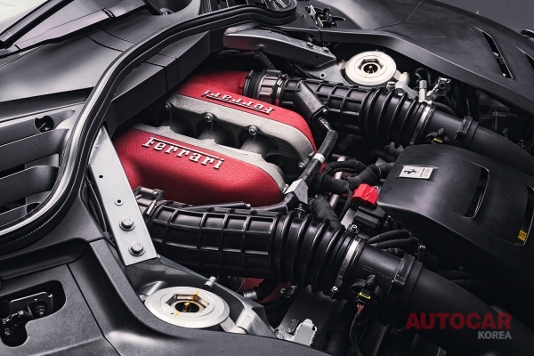 페라리 액티브 서스펜션 기술은 멀티매틱(Multimatic)사의 트루 액티브 스풀 밸브(TASV: True Active Spool Valve) 시스템을 통해 구현됐다. 이 새로운 서스펜션 아키텍처의 한 가지 장점은 TASV 48볼트의 모터 액추에이터가 댐퍼 스트로크의 방향으로 힘을 가하는 속도다. 피스톤 로드로 인해 고주파에서 응답할 수 있고 마찰, 관성 및 패키지 공간은 감소되었다. 액티브 서스펜션 시스템은 각 서스펜션 코너에서 가속도계와 위치 센서를 사용하며, 사이드 슬립 컨트롤(SSC 8.0) 및 6방향 섀시 다이내믹 센서(6w-CDS)와 상호 작용한다. 이 기술은 최대 코너링 성능을 최적화하는 효과를 낸다.