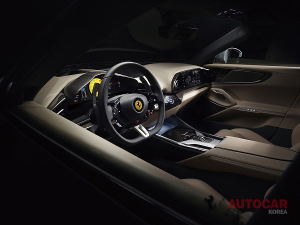 운전석은 SF90 스트라달레에서 영감을 받았으며 거의 정확하게 동반석과 대칭을 이루고 있다. 실내 아키텍처는 듀얼 콕핏 대시보드 콘셉트를 기반으로 한다. 수평 기조로 공간이 더 넓어 보이고 역동적인 분위기를 낸다. 객실에는 페라리 역사상 처음으로 4개의 분리된, 독립 조절 가능한 시트가 장착됐다. 버메스터 3D 하이엔드 서라운드 사운드 시스템 또한 기본 장비로 첫 선을 보인다.