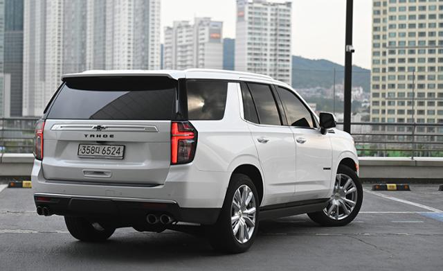 후면에서도 거대한 체격을 고스란히 드러내며 검은색 타호 레터링과 쉐보레 고유의 듀얼 램프 스타일의 리어 콤비네이션 램프를 더했다. 두툼하게 그려진 바디킷, 그리고 듀얼 타입으로 다듬어진 트윈 머플러 팁 역시 볼륨감을 강조한다.