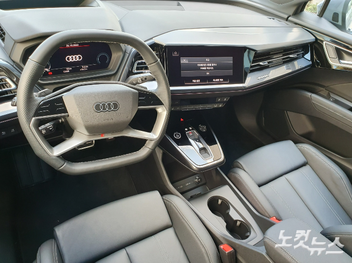우선 운전석에 앉으면 Q4 e-트론이 운전자를 중심으로 설계됐다는 점을 느낄 수 있다. 가로로 길게 자리 잡은 송풍구 가운데 자리한 인터테인먼트 시스템이 운전석 방향으로 살짝 기울어져 보기에 편하게 배치된 탓이다.