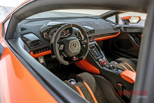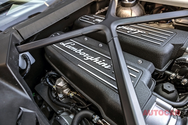 테크니카의 동력 전달은 직선적이지만 슈퍼카다운 성능을 내기 위해서는 4500rpm의 회전 속도가 준비되어야 한다. 그리고 4500rpm부터 8000rpm까지 이 V10은 몇몇 고성능 엔진들이 도저히 닿을 수 없는 스펙타클한 퍼포먼스를 숨기지 않는다. 도로 위에서 후륜구동과 사륜 스티어링의 조합이 우라칸의 핸들링 특성을 향상시키는데 어느 정도 도움이 되긴 하지만, 그야말로 살아 움직이기 위해 치열하게 운전해야 하는 차를 변형시키지는 못한다.