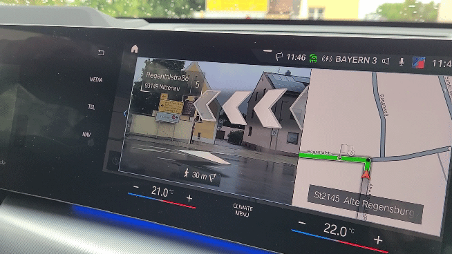내비게이션은 증강현실 뷰를 선택사양으로 할 수 있습니다. 단순히 길만 알려주는 게 아니라 차량 위치나 회전반경에 따라 세밀하게 바뀌는 것도 독특합니다. 따로 조작하지 않아도 스마트폰과 자동으로 연동하는 것도 편리한 기능입니다.