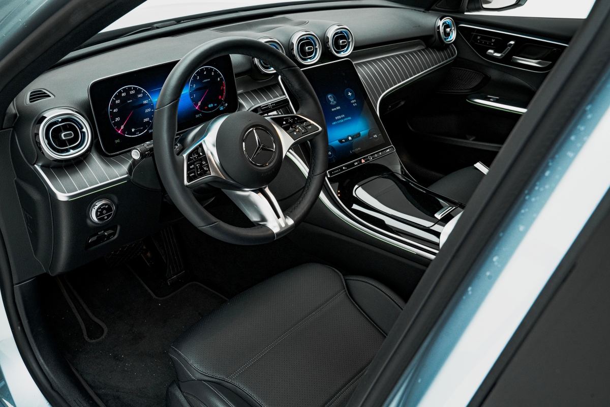 여기에 C클래스는 벤츠의 최신 디자인 언어를 받아들여 세로가 긴 메인 디스플레이를 사용한다. 메인 디스플레이의 크기는 11.9인치로 칼럼 방식의 기어를 사용하기에 깔끔한 센터 콘솔 디자인과 이어진다. 인포테인먼트 시스템도 최신 버전의 MBUX 시스템을 사용한다. UI 디자인이 대체로 큼직한 편이라 시인성이 좋다. 3시리즈는 10.25인치 메인 디스플레이를 사용하는 전형적인 BMW의 인테리어 디자인이다. 센터페시아와 센터 콘솔까지 아직 여러 물리 버튼들이 남아 있는데, 취향에 따라 이러한 버튼들을 조작하는 것이 더 마음에 들 수도 있다.