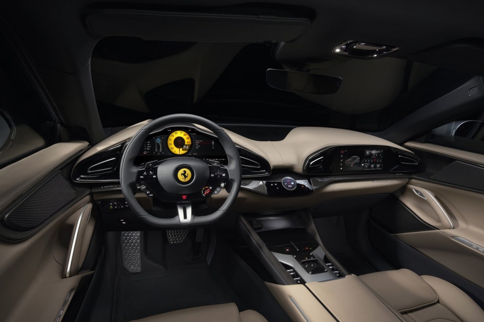 완전히 새로워진 섀시에는 리어 힌지 백 도어를 통합해 승하차를 쉽게 할 수 있으면서도 차량을 최대한 콤팩트하게 만들 수 있었다. 푸로산게는 다른 페라리보다 더 높은 드라이빙 포지션을 가지고 있지만 그 구성은 다른 페라리 차량과 동일하다. 결과적으로 드라이빙 포지션은 여전히 바닥에 가까워 차량의 다이내믹한 성능을 온전히 즐길 수 있다.