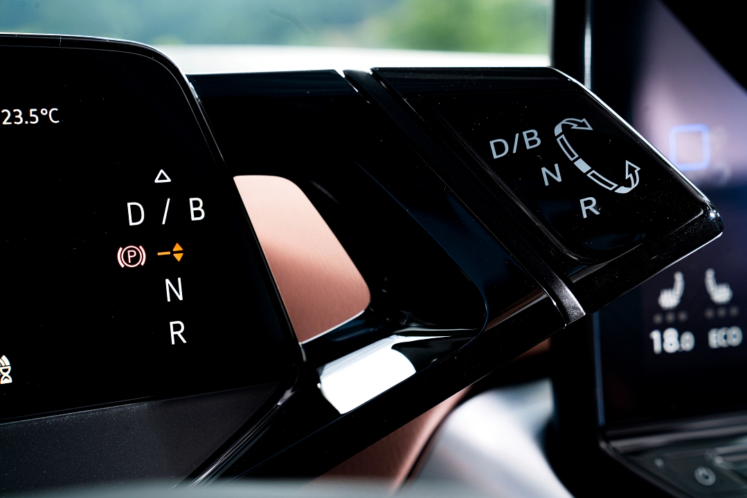 또한 계기판의 오른쪽에 시프트 바이 와이어 방식의 기어 셀렉터가 장착되어 있다칼럼에 붙은 것이 아닌 계기판에 붙어있어 새롭다위로 회전하면 D, 아래로 회전하면 R이 선택되는 방식이다일반적인 기어 셀렉터의 R/D의 위치와 반대라서 헷갈리겠다고 생각할 수 있지만차가 앞뒤로 간다는 것을 생각하면 오히려 이 방식이 더 직관적일 수도 있다.