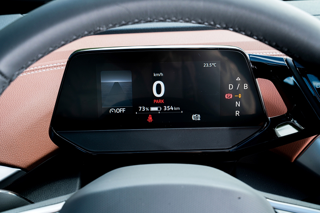 출발하기 전에 ID.4의 제원부터 살펴보자최고출력 150kW(201마력), 최대토크 310Nm(31.6kg·m)의 전기모터와 82kWh 용량의 배터리가 조합되며 최대주행가능거리는 405km충전 시스템은 최대 135kW의 급속충전 및 11kW의 완속 충전을 지원하며최대 급속 충전 속도로 충전하면 36분 만에 80% 충전이 가능하다최고속도는 시속 160km, 정지상태에서 시속 100km 가속은 8.5초가 필요하다제원으로 보이는 숫자는 우리가 기대하는 지극히 평범한 전기차다.
