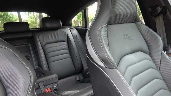 후면에는 리어 스포일러와 크롬으로 마감된 쿼드 배기 파이프가 R라인의 역동적이고 스포티한 디자인을 완성하고 있다. 트렁크 리드 상단에도 블랙 컬러의 립 스포일러를 더해 점잖은 세단이 아닌 스포츠 세단으로써의 매력을 더욱 부각시켜 주고 있다.