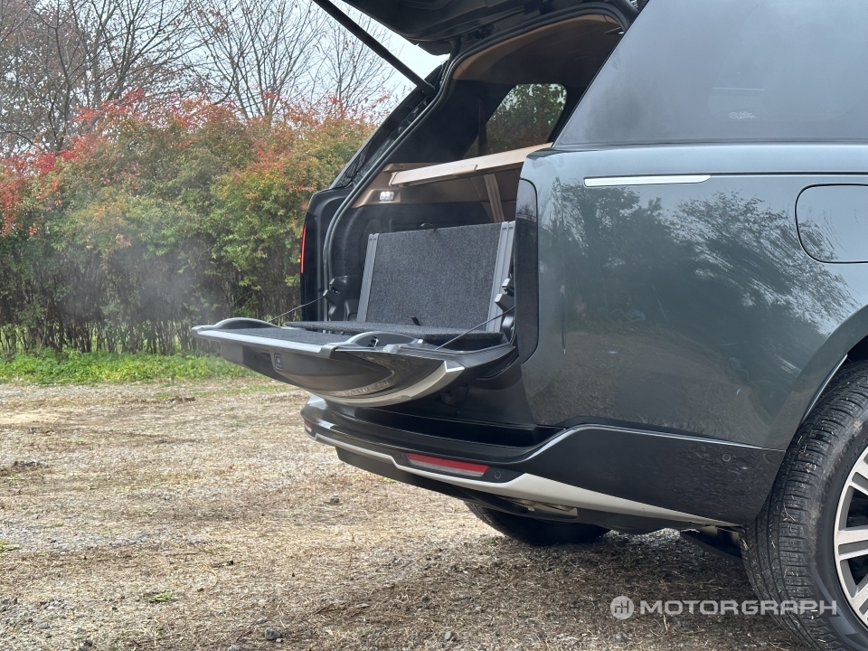 트렁크 해치는 위아래로 나뉘어 열린다. 하단부는 성인 두 명이 올라가도 거뜬히 버틸 수 있다. 신형 레인지로버는 트렁크 바닥을 세우면 등받이처럼 사용할 수 있는데, 순식간에 의자로 변신한다. 경치 좋은 곳에서 오붓하게 앉아 노을을 감상하는 상상을 해본다. 조금 더 아늑한 분위기를 원하는 이들을 위한 정품 쿠션 액세서리도 준비됐다.