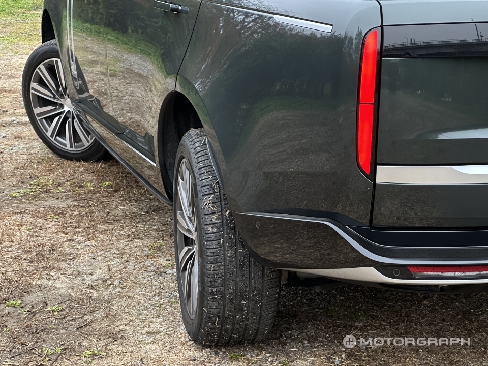 시승차는 롱 휠베이스 7인승 사양이다. 5252mm에 달하는 차체 길이만도 엄청난데 너비는 2003mm, 높이도 1870mm다. 멀리서 봐도 거대한 덩치가 시선을 압도한다. 휠 크기도 22인치나 되는데, 커다란 차체에 비하면 조금 소박한(?) 느낌이 들 정도다.