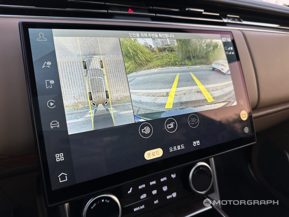 굳이 험로가 아니더라도 '클리어 사이트 그라운드 뷰'는 꽤나 유용하다. 원래는 오프로드에서 차량 손상이 우려되는 암석이나 구덩이 등을 모니터링하는 기능인데, 주차 스토퍼나 야생동물 등 실생활에서 만나는 장애물까지 훤히 보여준다. 덕분에 물리적 피해를 피할 수 있을 뿐만 아니라 커다란 차체를 조작하는 데 있어 심적으로도 편안하다.