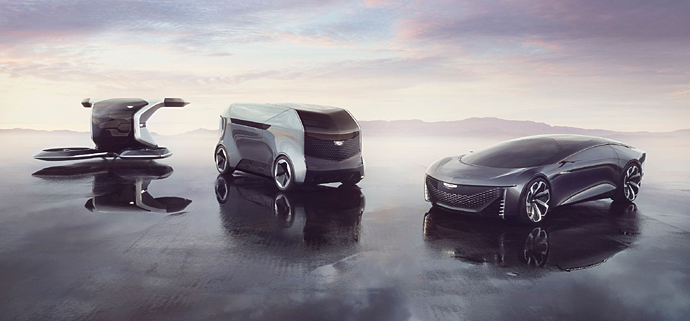 ● 캐딜락 헤일로 포트폴리오: 캐딜락의 헤일로 포트폴리오는 개인화한 전동화 자율주행 이동수단을 형상화한 콘셉트 모빌리티들이다. 캐딜락은 2021년, CES에서 통해 두 개의 헤일로 콘셉트 모델, 수직 이착륙 항공기 VTOL과 자율주행 로보택시 POD을 소개했다. 그리고 CES 2022에서 2인승 럭셔리 자율주행 전기차 콘셉트카 ‘이너스페이스(InnerSpace)’를 공개했다. 마지막 콘셉트카 '오픈스페이스(OpenSpace)'는 추후 공개될 예정이다.