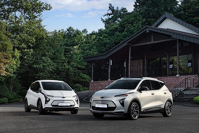 ● 쉐보레 볼트 EV / EUV: 100년의 GM 전기차 기술이 반영된 쉐보레 볼트EUV와 신형 볼트EV는 전기차 전용 아키텍처를 공유하면서도 각기 다른 특색을 자랑한다. 볼트 EUV는 역동적인 SUV의 비율이 강조된 직선적이고 스포티한 감성이 특징이다. 부분변경을 거친 2022년형 볼트EV는 보다 미래적인 감각이 반영된 외관 디자인과 업그레이드된 편의사양을 갖췄다. 두 모델은 150kW급 고성능 싱글 모터 전동 드라이브 유닛을 탑재해 최고출력 204 PS, 최대토크 36.7 kg.m의 강력한 퍼포먼스를 발휘한다. 또한 두 차량 모두 LG 에너지솔루션의 66kWh 대용량 배터리 패키지를 탑재했으며 볼트EUV는 403 km, 2022 볼트EV는 414km의 1회 충전 주행거리를 인증 받았다. 급속충전 시 1시간 안에 전체 배터리 용량의 80%를 충전할 수 있다. 볼트EUV에는 10개의 에어백이 적용됐으며, 볼트EV 역시 기존 6개에서 10개로 늘어난 동급 최다의 에어백을 탑재했다. 차체에는 기가스틸이 포함된 초고장력/고장력 강판이 볼트EUV에 84.4%, 볼트EV에는 81.5%가 적용돼 견고한 차체 구조를 실현했다. 이외에도 다양한 첨단 안전 및 운전자 보조 사양을 두루 갖췄다. 새롭게 적용된 어댑티브 크루즈 컨트롤(ACC)을 포함해 차선이탈 방지 경고 및 보조시스템, 저속 자동 긴급제동 시스템, 전방 보행자 감지 및 제동 시스템 등 14가지의 능동 안전사양과 전용 미쉐린 셀프실링 타이어를 적용하는 등 360 올 어라운드 세이프티(360 All around safety)를 구현했다.
