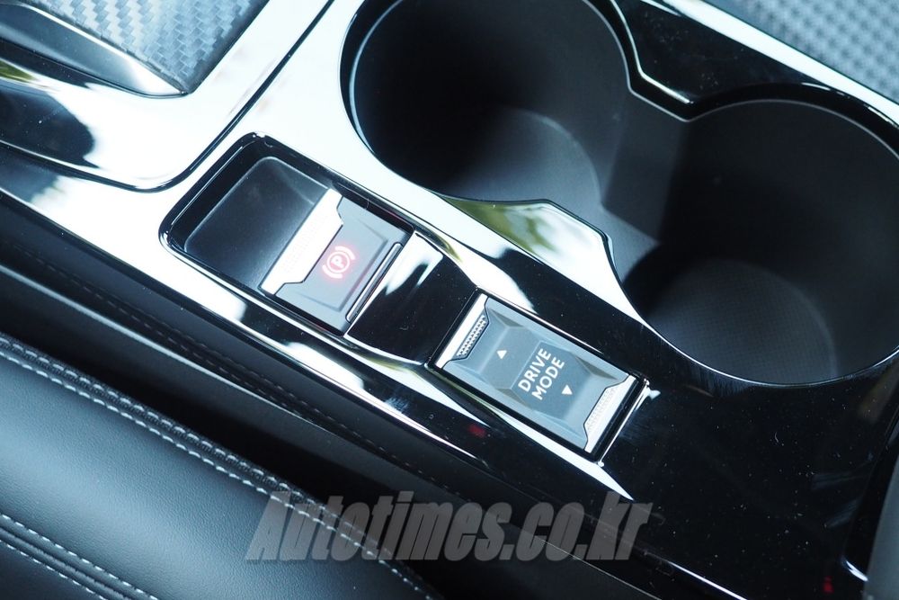 변속 레버는 길죽한 디자인을 삭제하고 작은 전자식 토글 타입으로 바뀌었다. 직관적인 구조로 훨씬 사용하기 편하다. 밑으로는 전자식 주차 브레이크와 주행 모드 조절 버튼이 가지런히 놓여있다.