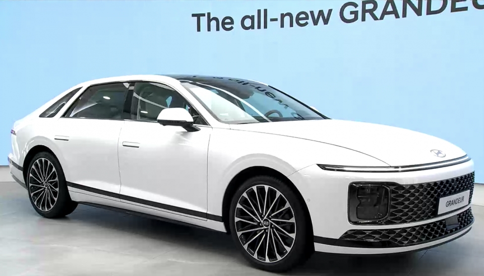 한편 현대 플래그십 세단 7세대 그랜저는 전면부의 수평형 램프와 통합형 그릴, 측면 20인치 휠과 프레임 리스 도어 및 오토 플러시 도어 핸들, 1세대 그랜저를 상징하는 C필러 오페라 글래스로 외관을 꾸몄다.