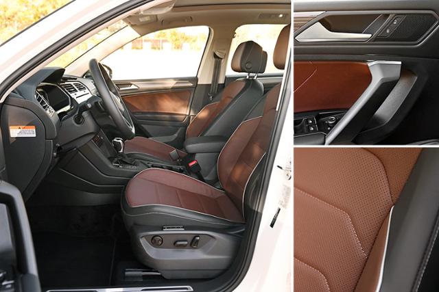 비슷한 체급의 SUV 사이에서 티구안이 제시하는 가장 큰 매력은 단연 넉넉한 공간이라 할 수 있다. 실제 1열 도어 안쪽의 전체적인 공간 감각이 쾌적하며, 시트의 크기도 준수하다. 또 파노라마 선루프의 ‘개방감’ 역시 매력적인 부분이다. 더불어 갈색의 가죽이 대비를 이루는 점도 좋다.