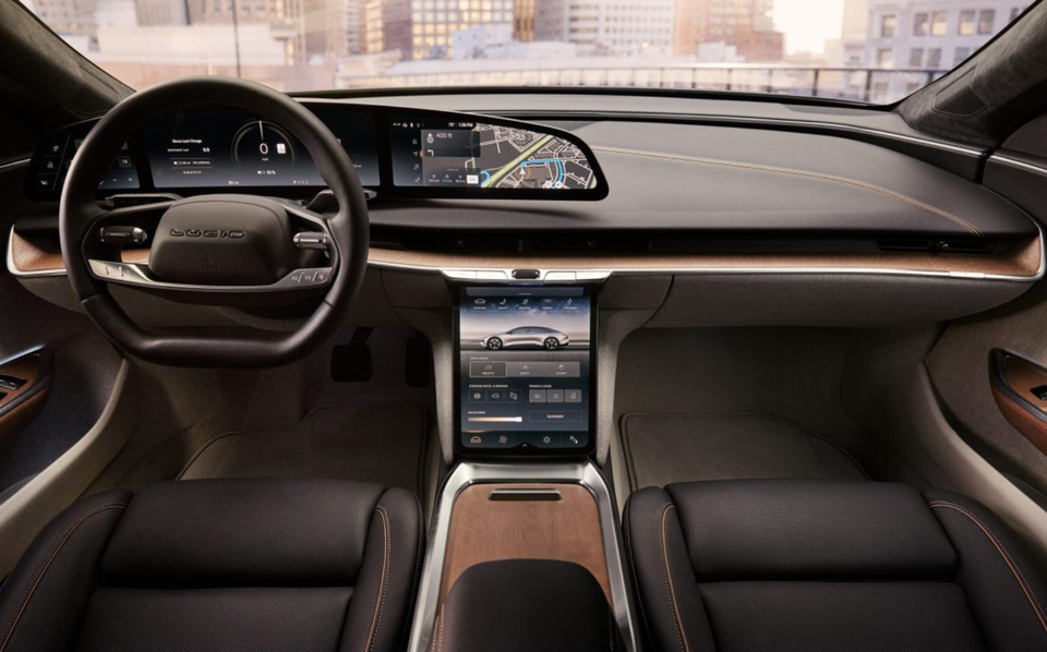 루시드 에어의 실내는 가죽 대용으로 사용하는 세계 유일의 탄소중립 천연가죽 생산업체인 나파(Nappa)의 PurLuxe, Lucid-speak가 적용된다.