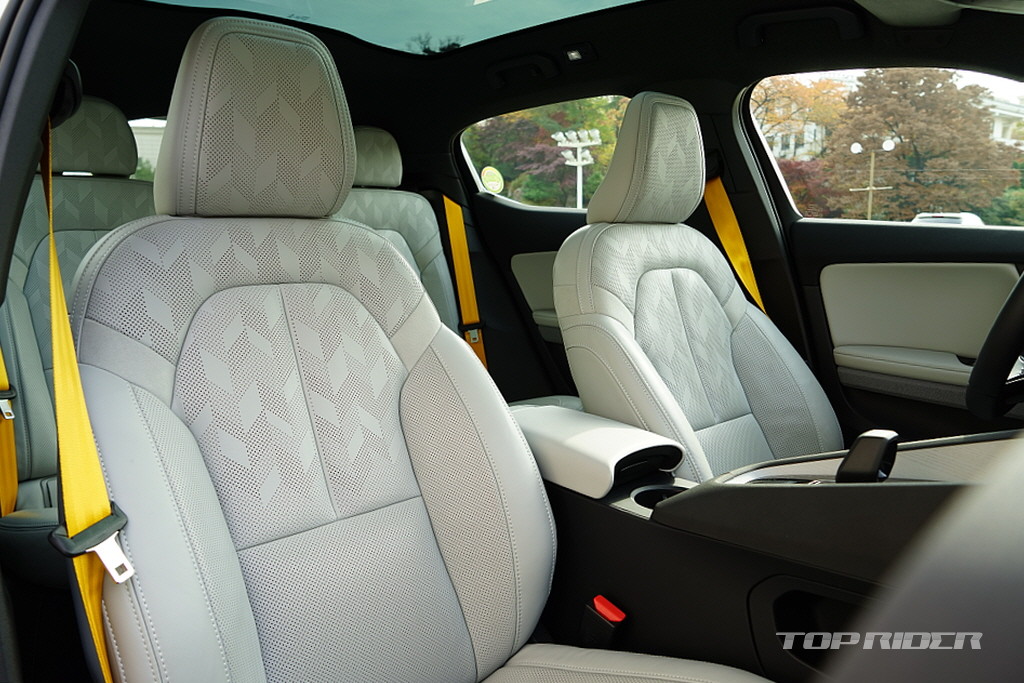 특히 브레이킹 감각은 전기차 중 가장 좋은 수준이다. 회생제동 0단계에서도 가속페달에서 발을 떼면 0.5단계에 가까운 약한 엔진 브레이크 같은 감속이 이뤄지는데, 반복되는 제동과 가속에서 이질감을 발견하기 어렵다. 브렘보 브레이크는 반복 제동에서도 답력이 일정했다.