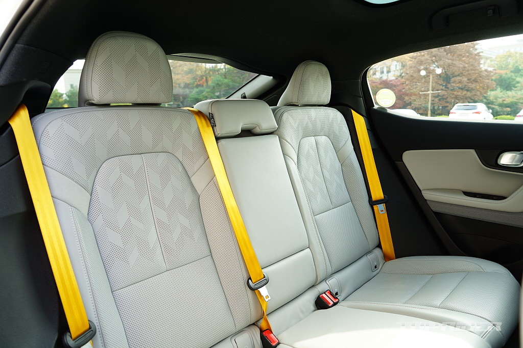 실내는 친환경 소재와 나파 가죽으로 마감해 보급형 브랜드 보다는 한 수 위의 고급감을 갖췄다. 퍼포먼스 패키지의 노란색 안전벨트는 눈에 띄는 요소다. 다소 꼿꼿해 보이는 2열은 실제 착좌감이 좋은 편이다. 트렁크 개폐시 리어 윈드실드까지 열리는 해치백 구조다.